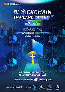 “100X and Bitazza present Blockchain Thailand Genesis 2022 : Road to Web3 – Limitless Possibilities” งานบล็อคเชนที่ใหญ่ที่สุดในประเทศไทย จัดโดย คริปโตมายด์ กรุ๊ป พร้อมด้วย สมาคมสินทรัพย์ดิจิทัลไทย, GuildFi, Bitcoin Addict Thailand และ Block Mountain ซึ่งปีนี้จัดเต็ม 2 วัน กับสถานที่จัดงานที่ยิ่งใหญ่กว่าทุกปี วันที่ 26 – 27 พฤศจิกายน 2565 ณ รอยัล พารากอน ฮอลล์ ชั้น 5 ศูนย์การค้าสยามพารากอน กับ 6 เทรนด์มาแรงของโลกแห่งยุค Web 3.0 ในปี 2022 นี้